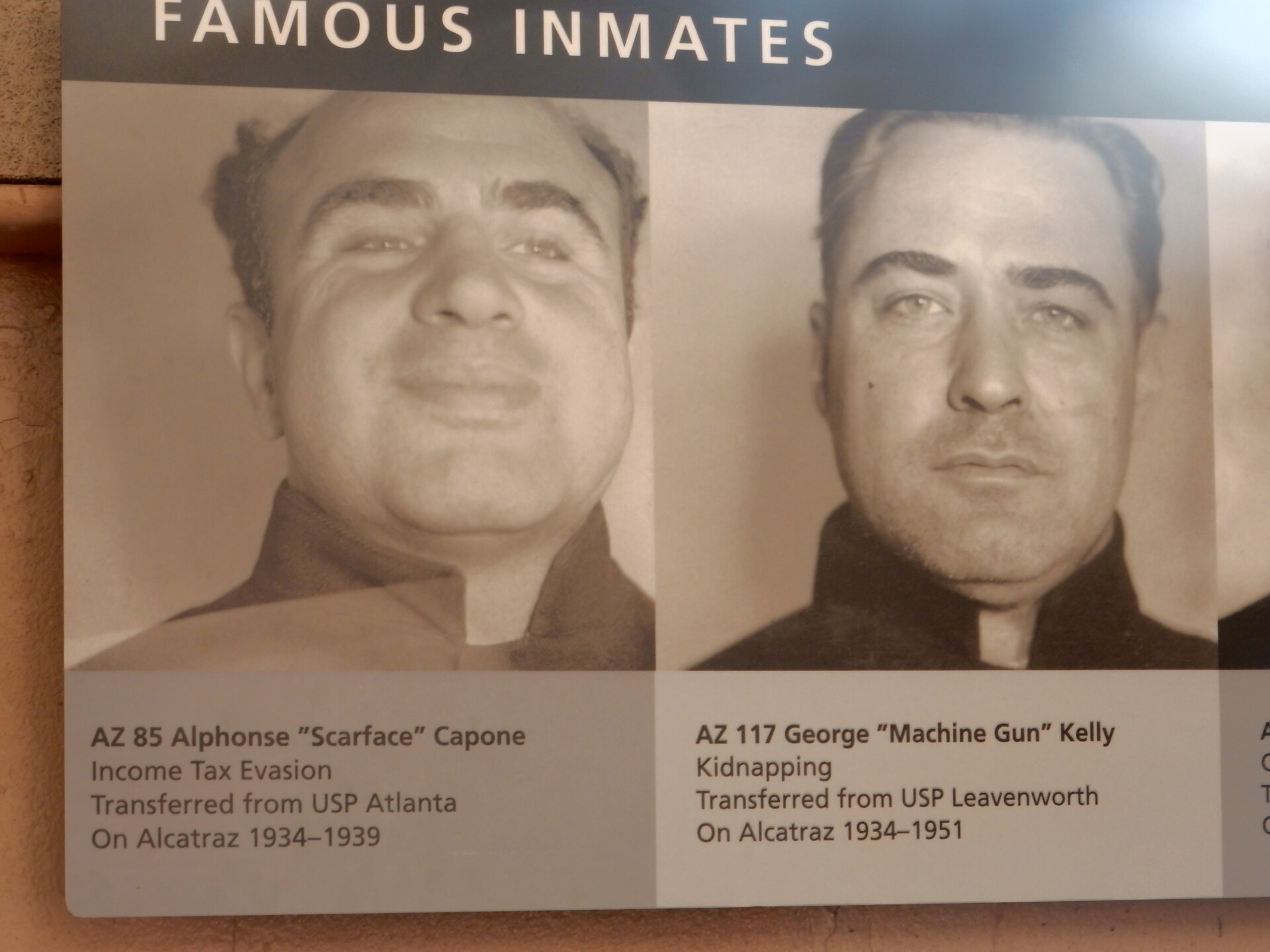 s playing host to some famous inmates – Al (Scarface) Capone, George (Machine Gun) Kelly, Robert (The Birdman) Stroud. The NPS do operate good tours and certainly like to present Alcatraz in a more positive light. Relaying stories of the prisoners being feed well, being provided with meaningful employment where they could earn money and being provided with activities where they could keep their minds and hand occupied. Of course the stories that are usually associated with Alcatraz are the famous inmates and the sensational breakout attempts.