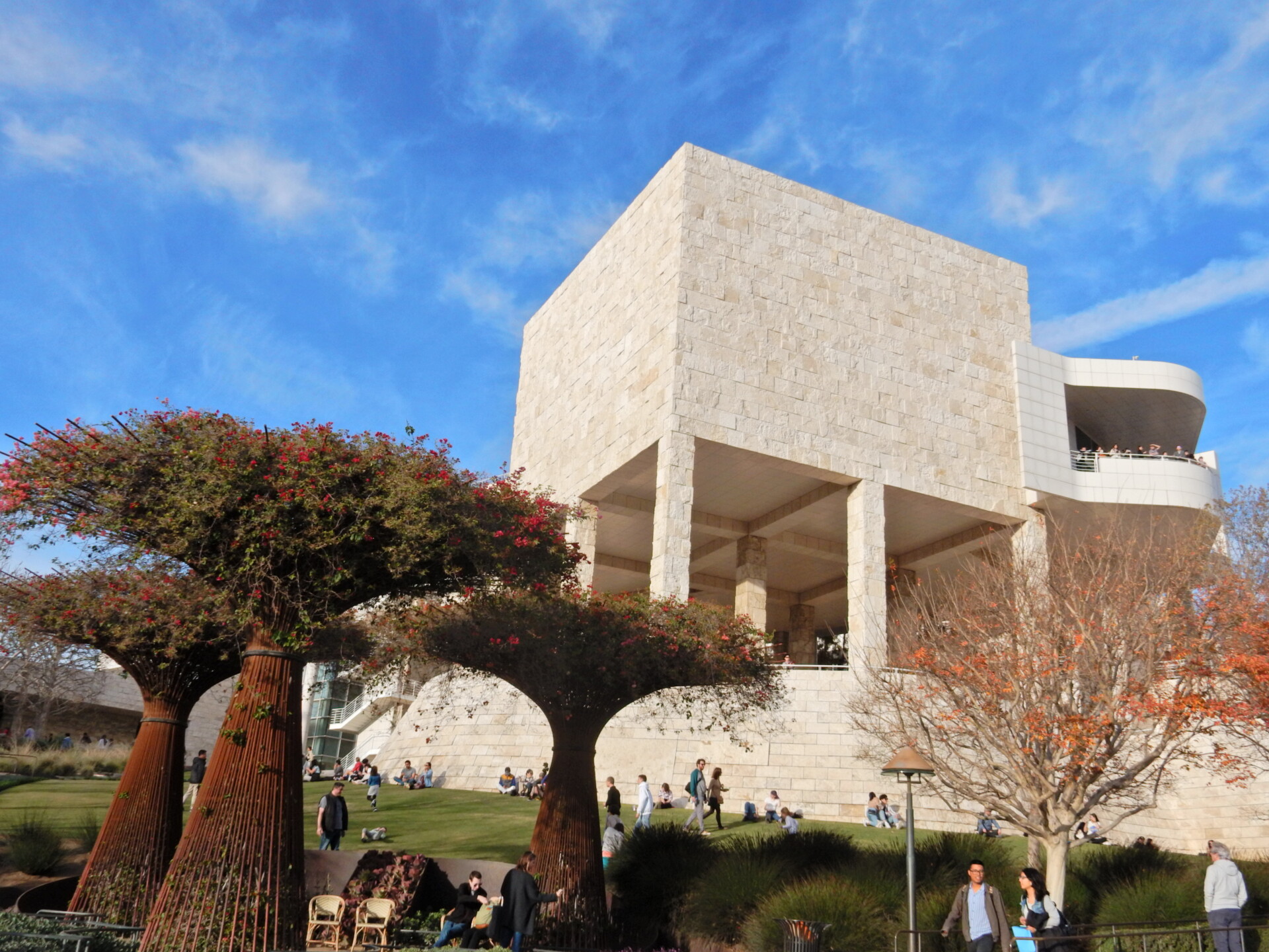 Today was an easy drive to LA via Long Beach. We checked into the Hotel Roosevelt in downtown Hollywood. Geoff and I left Liam and Carmel to explore Hollywood Boulevard whilst we drove out to the Getty Centre. The Museum is known for its architecture, gardens and views overlooking Los Angeles. The Centre sits on top of a hill and is connected to a visitors car park (7 levels underground) at the bottom of the hill by a three car, cable-pulled hovertrain people mover. The J. Paul Getty Trust is one of the world’s wealthiest art institutions with an estimated endowment in 2017 of US$6.9 billion.