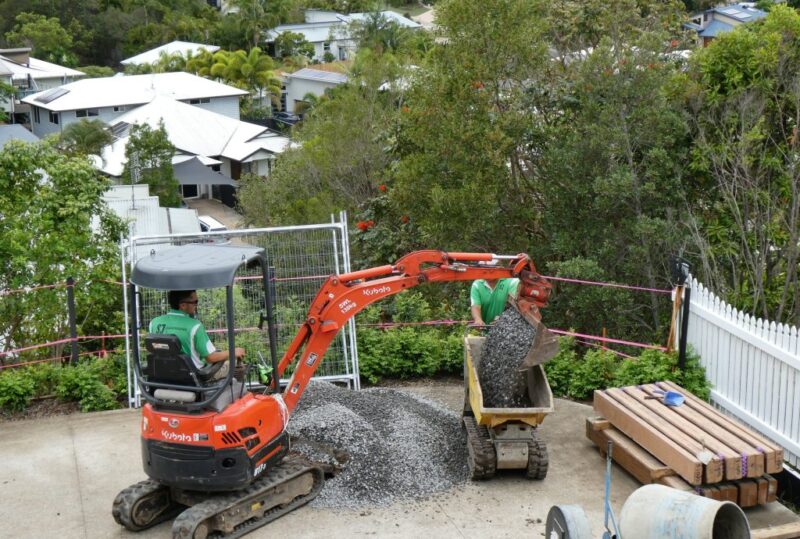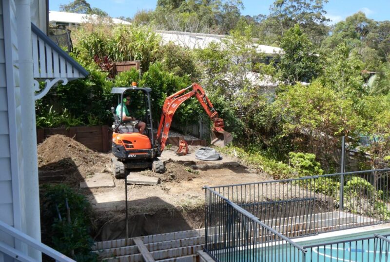 Day 12 – Tuesday 28 November Today the boys continued to remove soil from the site down to the skip bin. They also dug the holes for the posts of the retaining wall. The mo