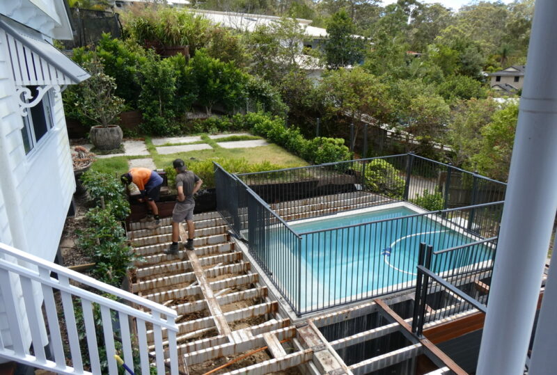 Tuesday 7th November – Melbourne Cup Day The day dawned bright and sunny. Three men on the job today dismantling and carefully storing the glass pool panels. Next it was on