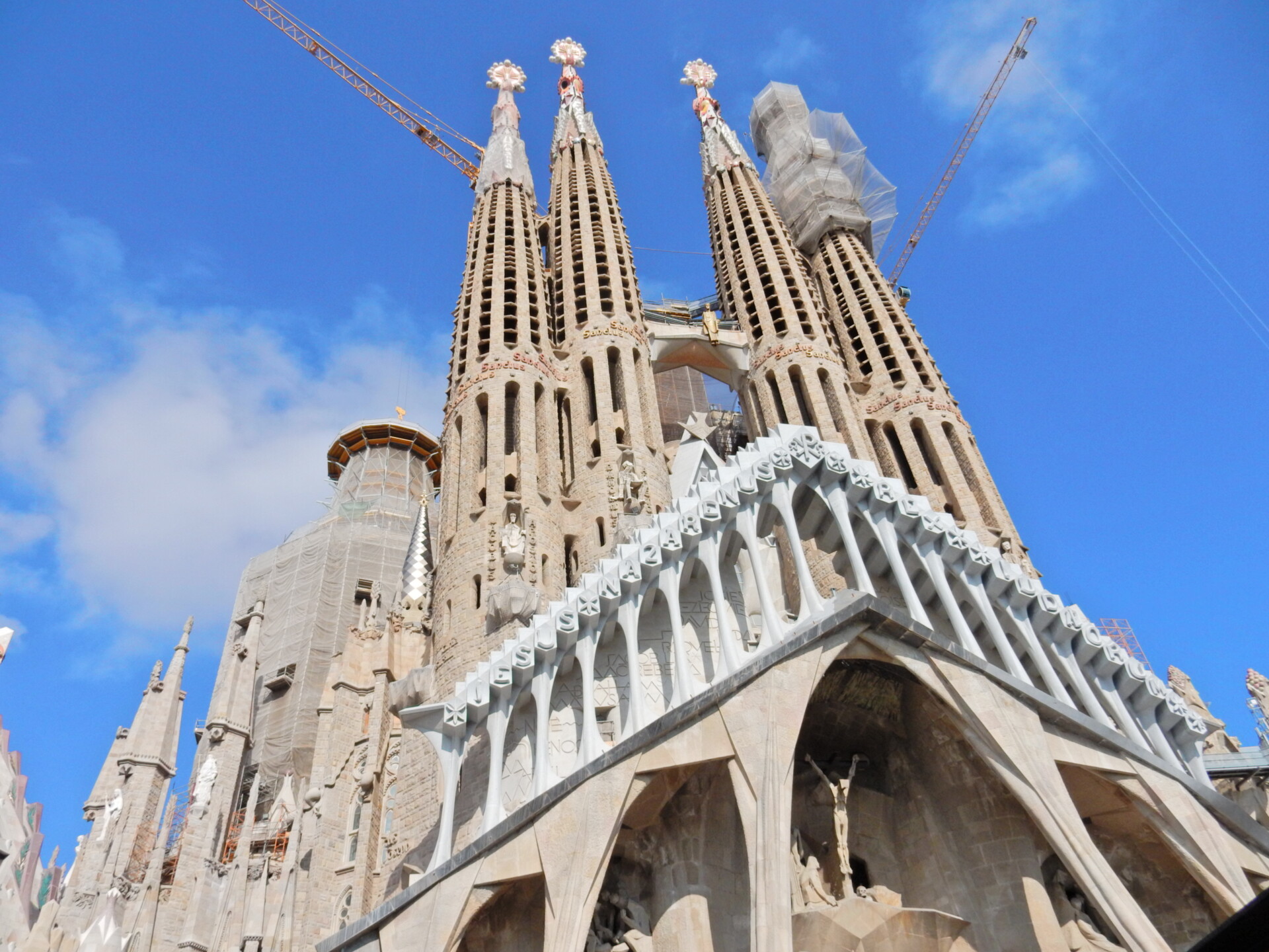 After a couple of hours exploring the inside of the church we took a break for some coffee and pastries before parking the boys up at a bar to share jugs of sangria whilst the girls circumnavigated the exterior to closely examine the detail in all of the sculptures. The entry point today is via the Nativity themed side of the church. The exit is via the Passion themed and more modern side. The side of the church that will eventually become the front entrace is yet to be constructed.