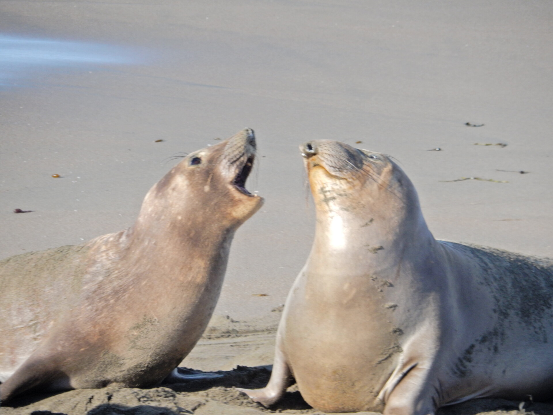 The elephant seals are monstrous in size. The males weigh in at 2300 kgs. They live in this area all year round. January is the calving month so we saw dozens of brand new seals. Their birth weight averages around 33 kg and they quadruple that in their first month!