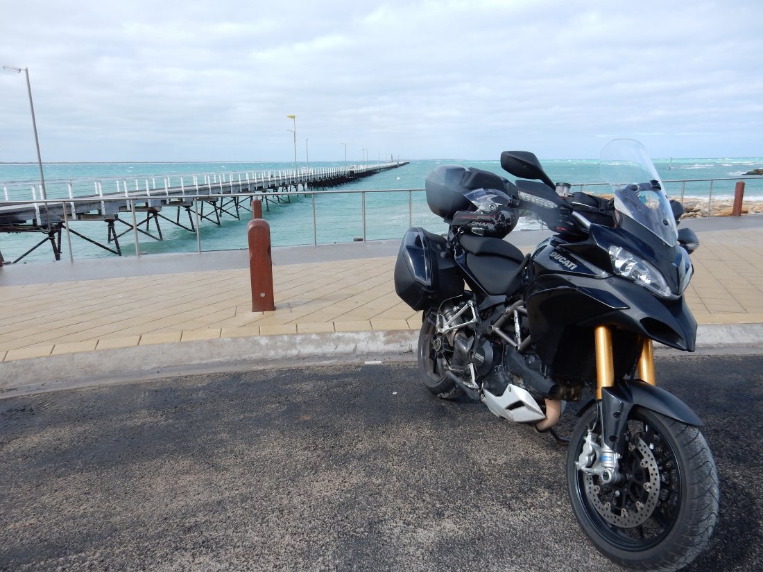 i will squeeze an extra day on the page, I delayed departure from Mt Barker till 9 but the temp was only touching 7… Far out this weather is getting annoying…no way I could handle rain and slippery roads today. After a quick squirt down the mountain and a tractor ride through Adelaide traffic I handed the bike over to Ian at the Ducati dealership. Straight away he picked it that the chain had tight spots and was in need of replacement. I felt vindicated in bringing the bike in to the doctors! I also checked on my tyres, especially the rear which at 5,850 km already had a disconcerting square profile. Seems like it should be expected for the softer Bridgestone’s on long runs through Central Australia. That was a relief, I thought I had stuffed up the tyre pressures.