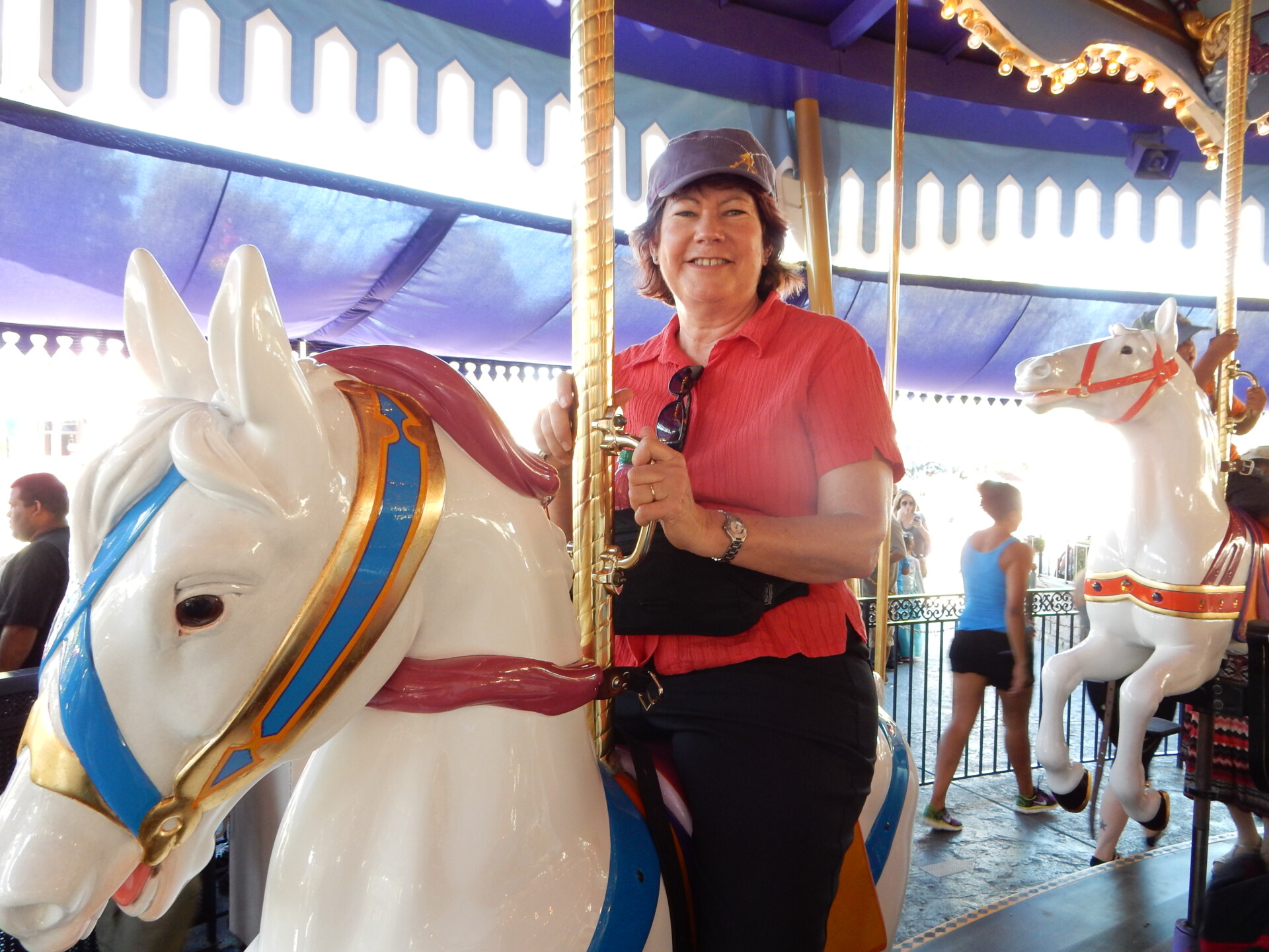 Day 2 at Disney Land and we visited both parks again. We had breakfast at the Pacific Wharf in California Adventure. it was really hot today, around 32C. Got very brave and went riding on the “Californian Screamin” – the roller coaster. Wow, it goes fast, up and downnnnnn……, sideways and upside down. “Screamin” is an appropriate name. We enjoyed a jazz band the “Ellis Island Boys” whilst sipping a Sangria and we visited Cars Land. It is a desert-like setting with shades of Route 66. We raced each other in the Radiator Springs racing cars and I won. The Hollywood Hotel and Tower of Terror was another bone cruncher of a ride. I also rode in a Trolley Car and the Disney Train. I thoroughly enjoyed the calming effects of the huge Carousel before I tested my nerves on the Matterhorn. For dinner we dined at Wine Country and then had front row for the Colour of Magic Show. This takes outdoor projection on water screens to a whole new level.