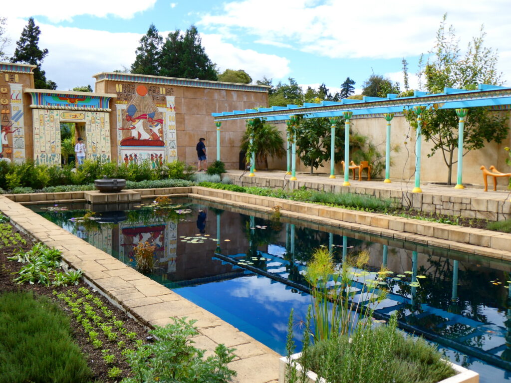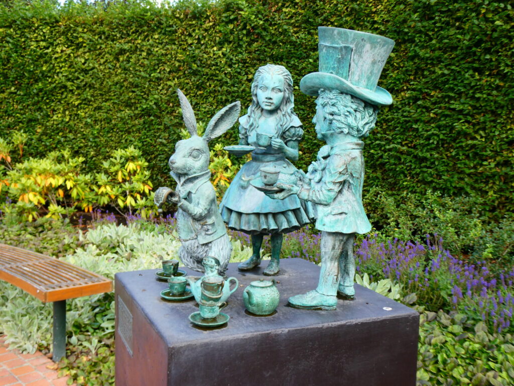 Off the Time Court with its large sundial and bronzed Alice in Wonderland tea party we found our way to the Tudor Garden, the Tropical Garden and the Surrealist Garden.  From the Braithwaite Court we found the Mansfield Garden complete with a tennis court all set for a garden party. A fairly new addition is the Ancient Egyptian Garden.  Cloud Court leads to a variety of international gardens including the Chinese Scholars’ Garden, Indian Charbagh Garden, Italian Renaissance Garden and the Japanese Garden of Contemplation.