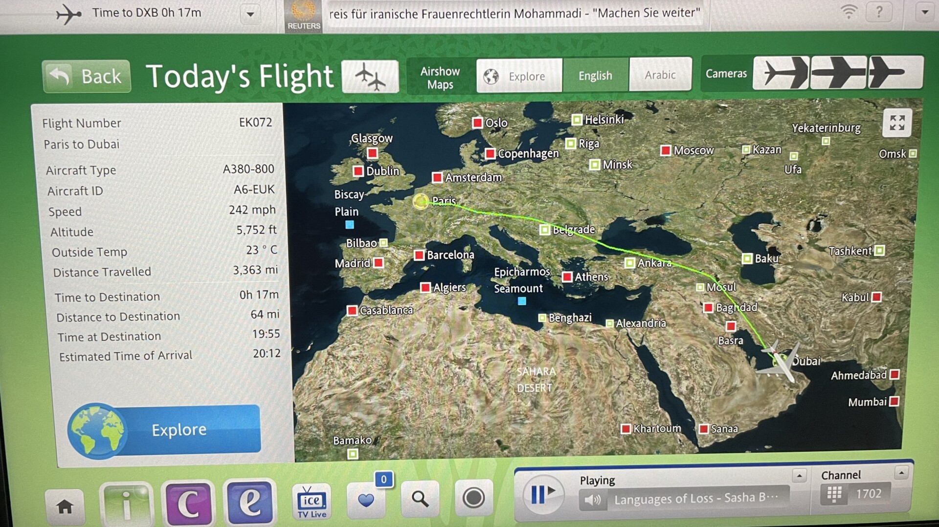 It was a pleasant 15C when we left Paris for Dubai. Note the temperature at approximately 6000 ft is 23C.